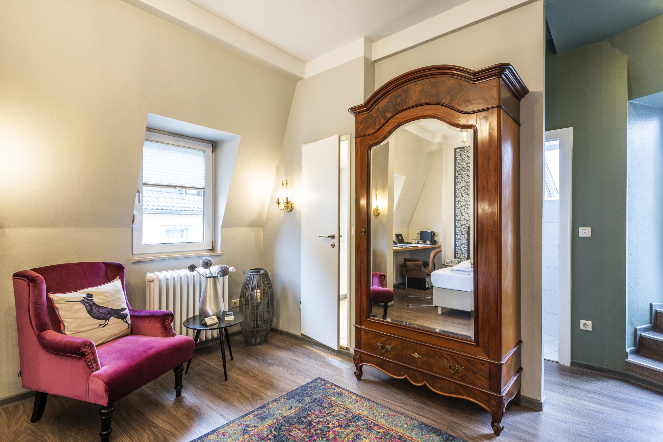 Seit 2011 führe ich dieses historische Haus aus dem Jahr 1908 mit großer Leidenschaft. Klassische Eleganz trifft bei uns auf modernen Komfort: Antike Stücke, edle Farben und zeitgemäßes Design schaffen Räume zum Wohlfühlen, Arbeiten und Träumen – auch für längere Aufenthalte.